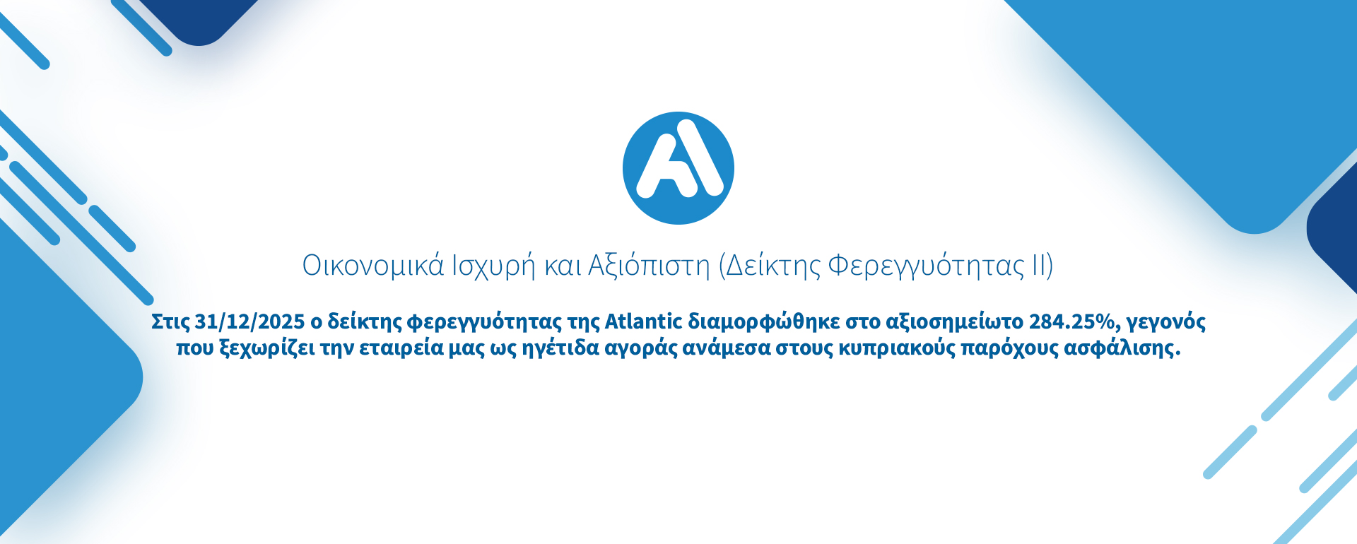 Η ATLANTIC ξεχωρίζει ως ένας Δίκαιος, Αξιόπιστος και Φιλικός ασφαλιστής!